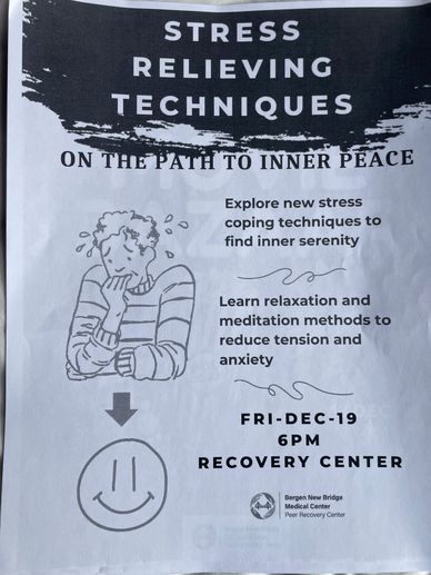 Starting an All-Recovery Group focusing on Alcoholics Anonymous, Narcotics Anonymous and Medicated Assisted Recovery Anonymous) At Bergen New Bridge Hospital every Saturday morning, with the blessing of Michael Paolello Chief Clinical Officer of Addiction Treatment.